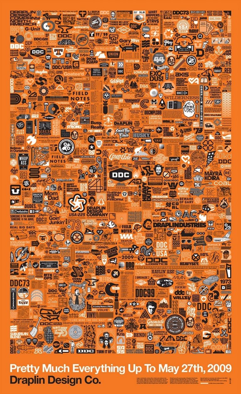 Draplin never forgets where he came from, for he “is never above designing a back stage pass at a concert, because that’s where I started.” He is respectably humble and honest about his beginnings, starting designing at age 19 without any formal training, and going to college later in life on a scholarship. Draplin is now 42, and although appreciative for what he learned in school, he considers the lessons from the field much more useful in everyday life, not just as a designer but as a human being.