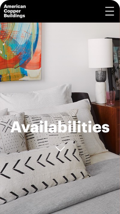 We were tapped to re-design and re-develop the American Copper website. The goal was to simplify the user experience by streamlining the navigation and prioritizing critical information, such as listing availabilities and application forms. By designing and developing modular components, we were able to provide the client with CMS flexibility and the user with intuitive consistency.