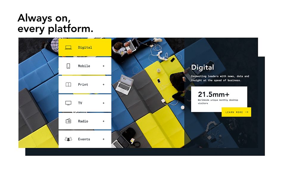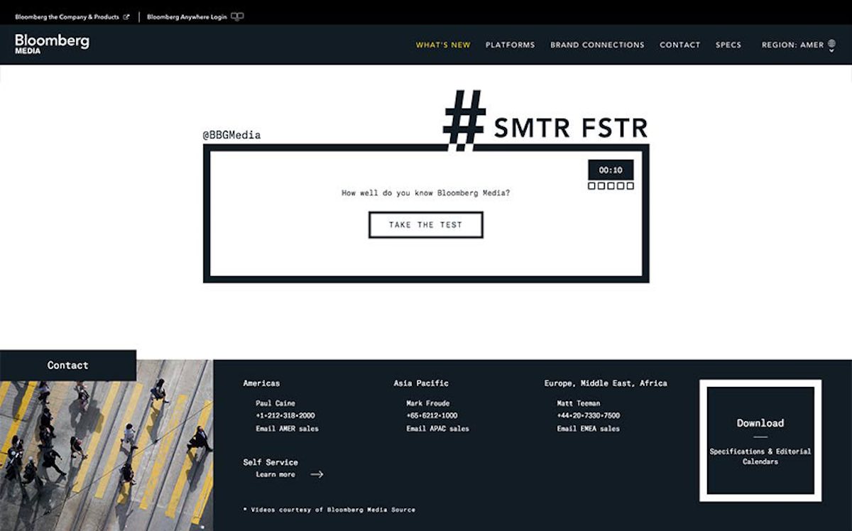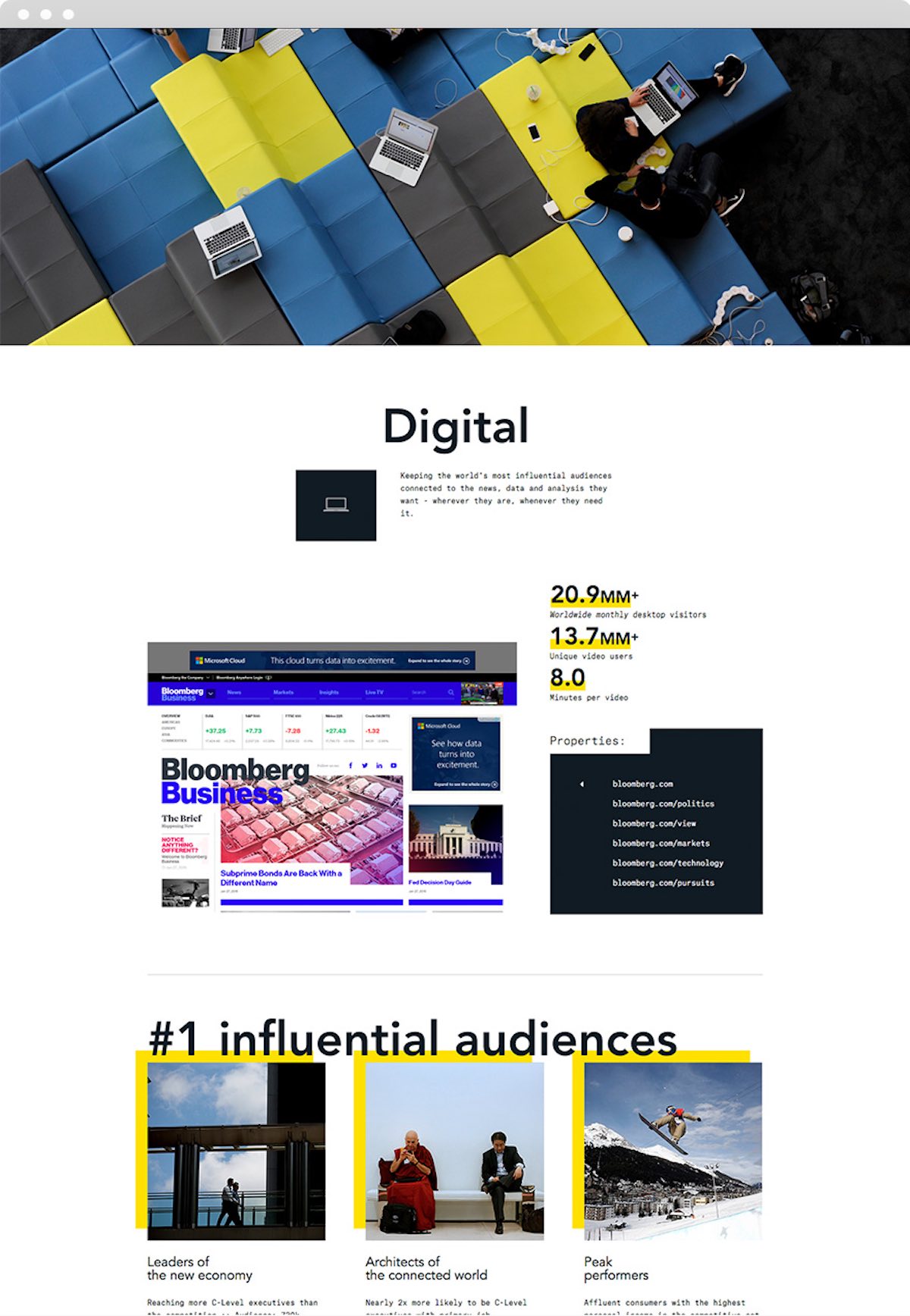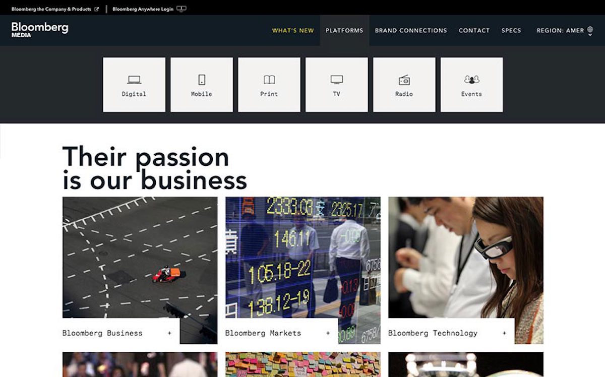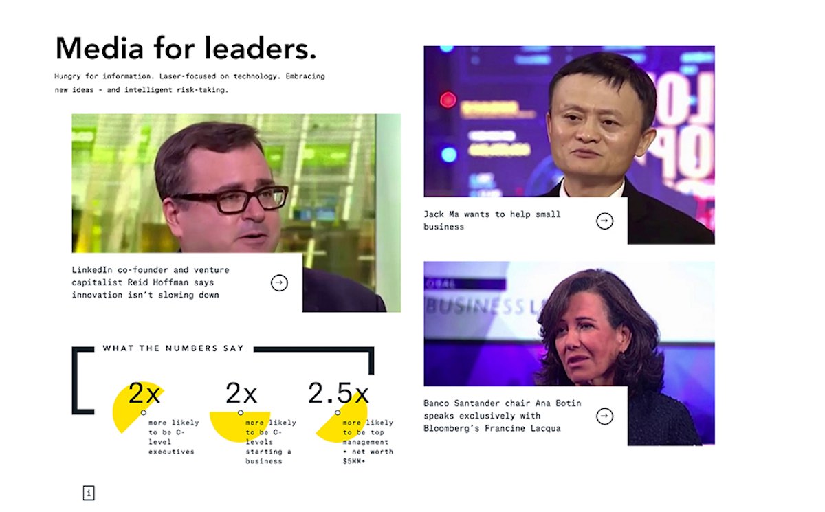 Part of Bloomberg Media’s objective to revitalize their B2B Media Kit for Ad Sales, The Charles was engaged to create a completely new and interactive website for the media team that not only showcased their experience and leadership in data-driven business media, but also the organization’s refreshed digital approach.