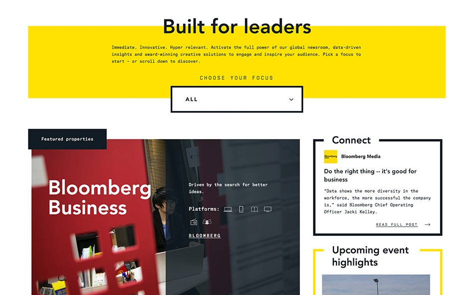 A second iteration of the Bloomberg Media site that introduces a new UX and unique functionalities for key site visitor needs.