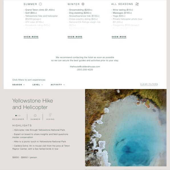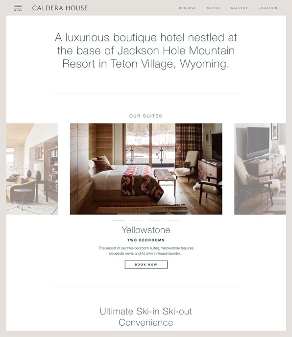 Caldera House is a luxurious boutique hotel nestled at the base of Jackson Hole Mountain Resort in Teton Village Wyoming. Our mission has been to design and build a web experience to serve as a digital home for the brand.