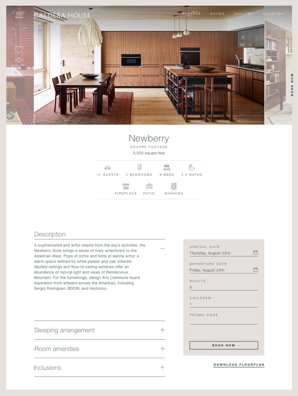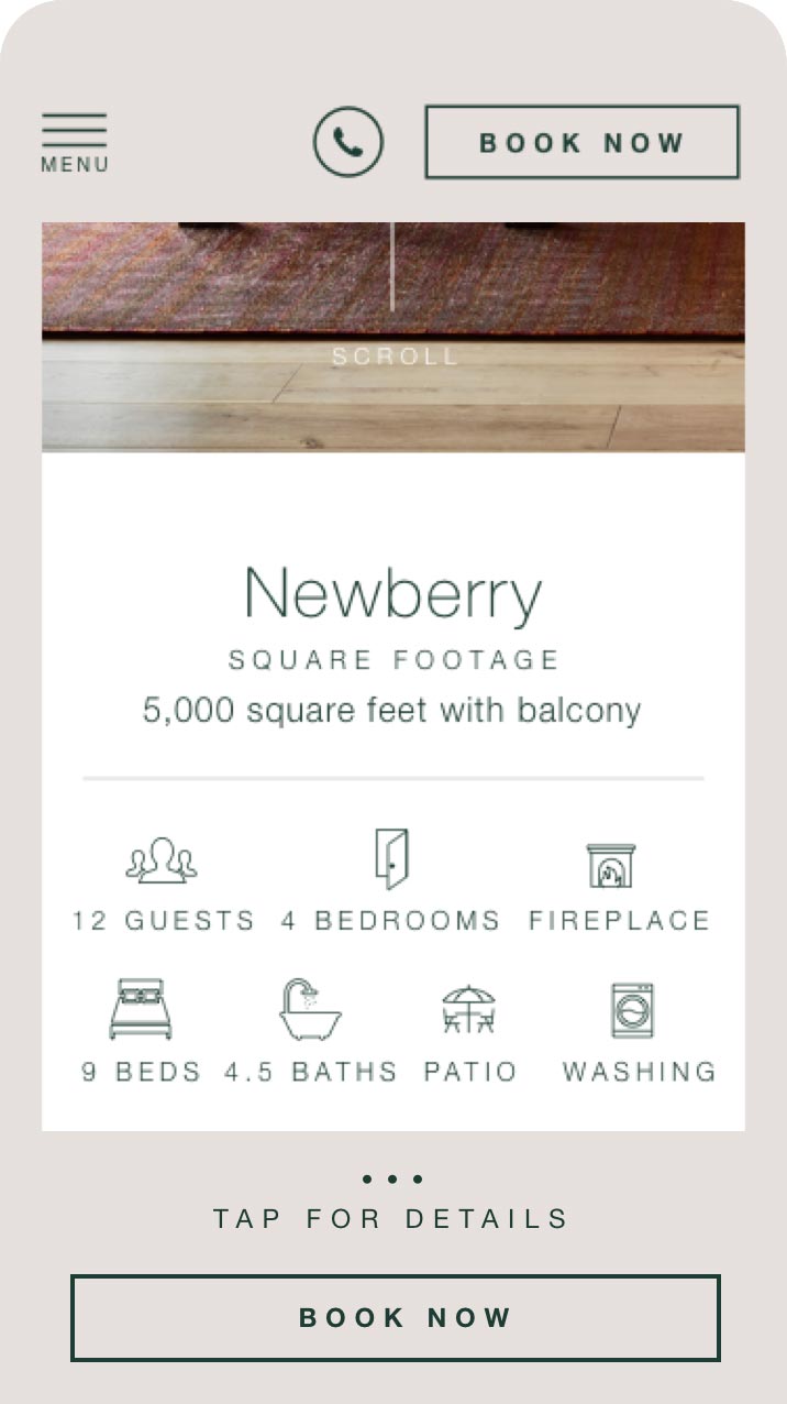 Caldera House’s website is compatible across mobile devices, with special consideration to allow users to book their stay easily with consistent call outs and one tap contact via telephone.
