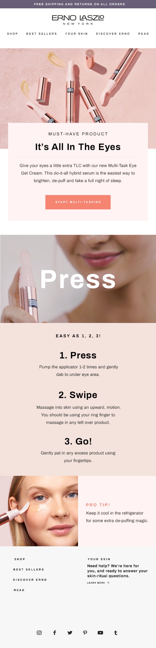 Eye Candy: We brought this pioneering new product to life with imagery focused. on the eyes and the spirited application process. Relatable, lighthearted content communicated the how-to: just press, swipe, and go!