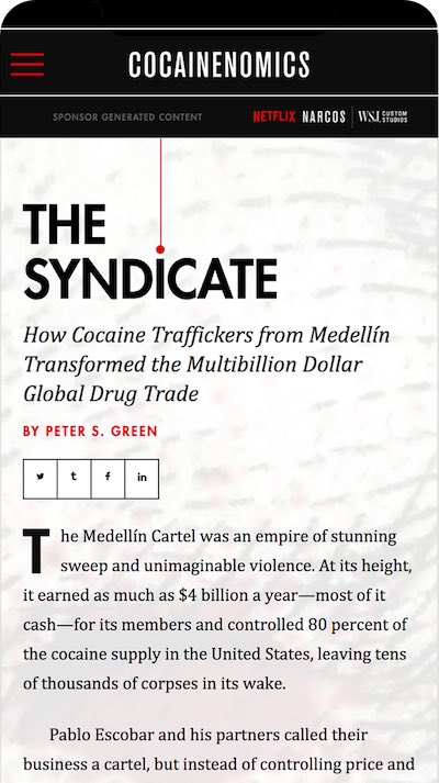 The idea of a business and economics story behind the Medellín cartel was something I really thought we could own.