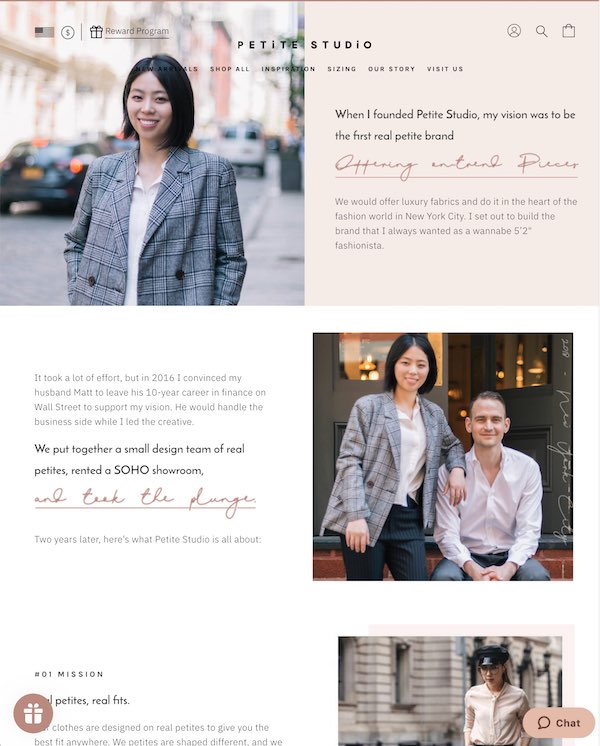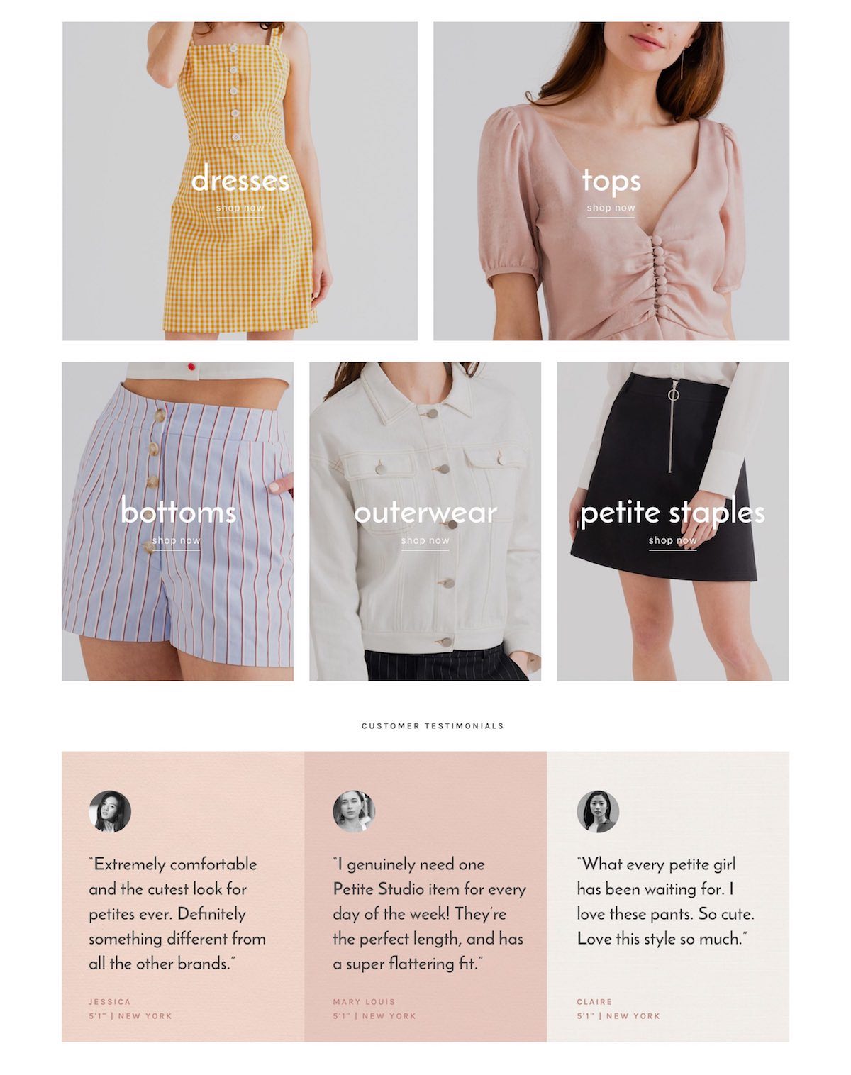 Supporting the story behind the brand and its creators, we created a visual narrative that integrated with the branding, website and content strategy. Real petites, Real fits.