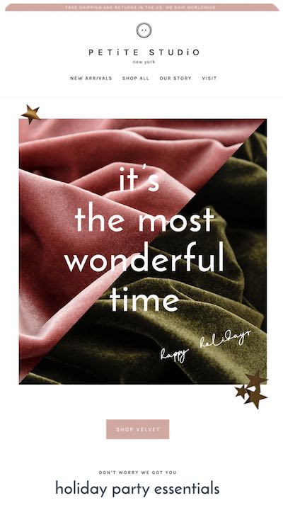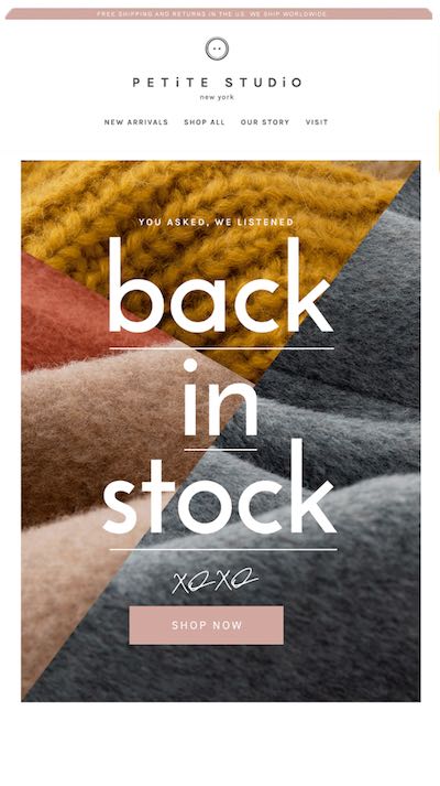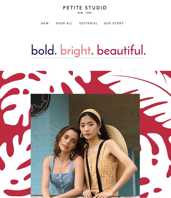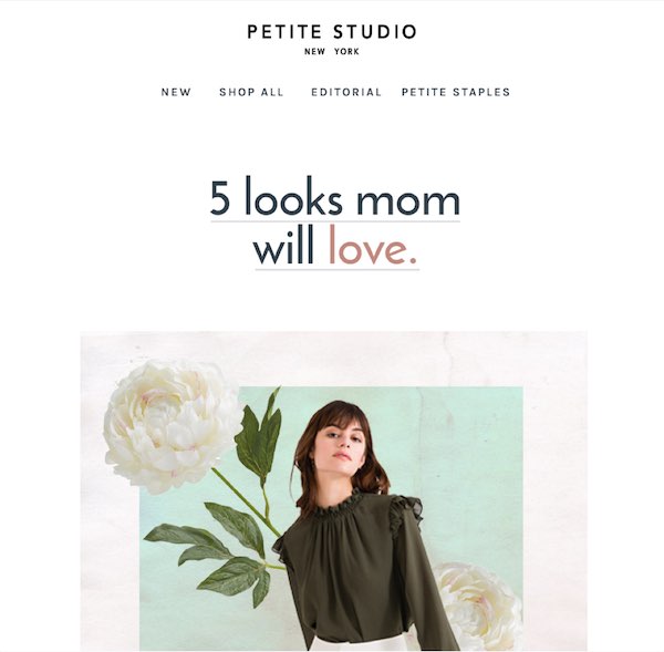 Emails solely focused on promoting new and existing products, and entice customers to make a purchase. The editorial emails are intended to tell a story visually and feel less promotional, leading the subscriber to a product in an subtle, artistic way.