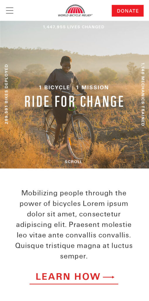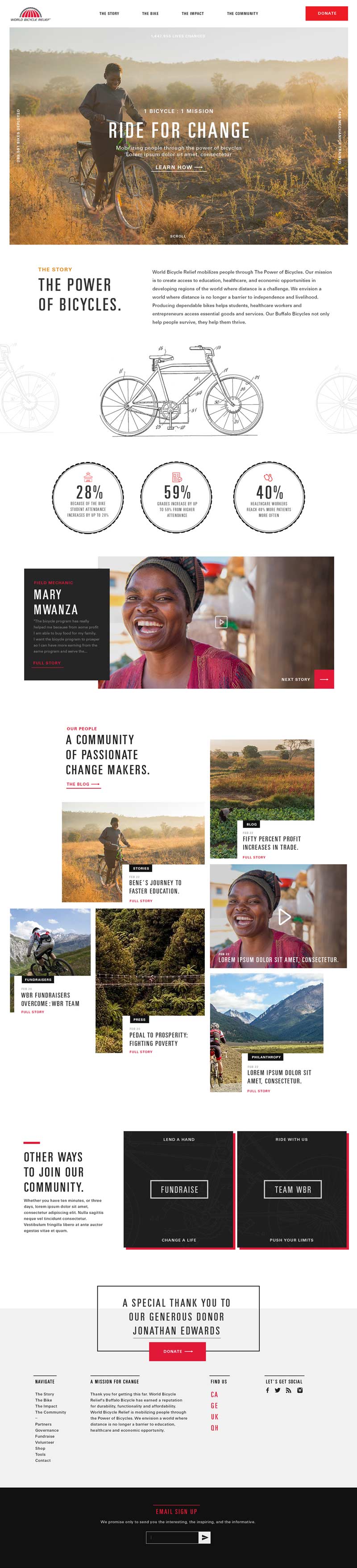 The Charles crafted a fully-responsive website with a focus on story telling and the communication of a visually rich brand narrative. The goal was to reinvigorate the WBR community and increase donations.